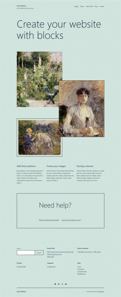 Twentytwentyone is one of the most appealing WordPress themes for enhancing the visual essence of your website, blog, or portfolio. It allows you to use the block editor to create anything from scratch. The Wordpress theme comes with revamped block patterns, which let you create interactive layouts within seconds. Compared to Sparkling and Divi, the theme features softer colors, which accentuate the appeal of your entire creation.?